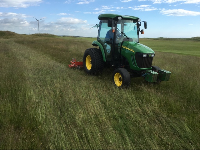 We have started to rake through the rough areas with the Terra Rake. Over the past few weeks the rough has grown to a height of approximately 350mm. The condition of the rough is good with a wispy thin sward in most areas, signs that we have made real progress over the last few years. To keep these areas thin we are now raking through the wispy grass and removing some material from the base. This work will continue throughout the summer months.